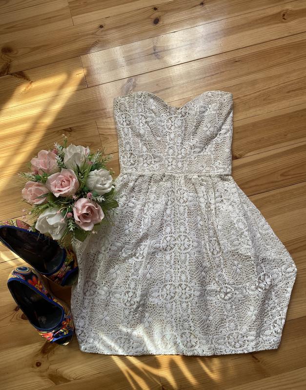 Очень красивое платье с открытыми плечами. Кружево хорошего качества. Есть потайной кармашек. Также вшитый корсет, отлично держит форму