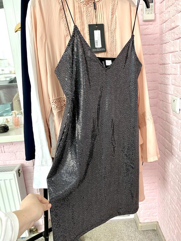 Нове. Купила на Новий рік,так і не наділа. Короткий блискуче ошатне. на бретелях. від H&M. Розмір пише Л,але підійде і на М. Дивлячись як хочете носити ,і обтяжку або більше зведеним. Тканина тягнеться Дивіться виміри : Напівобхват Талія - 46 см груди-48 см 📍Дивіться інші мої оголошення , від купівлі 2 речей,роблю хорошу знижку. Підписуйтесь на мій магазин, обновки будуть кожен день. Передплатникам знижка 📍 можливий Обмін