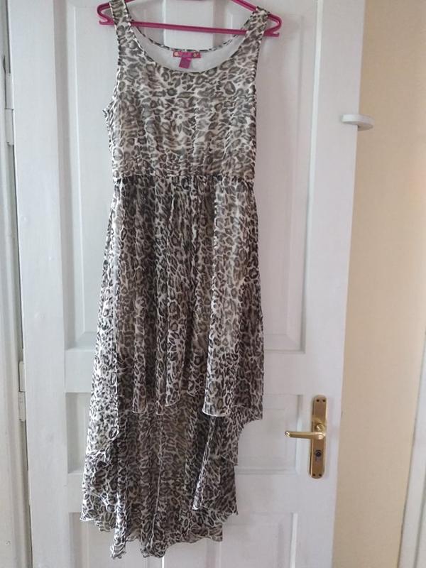Шифонова сукня в леопардовий принт, спереду коротка на запах, ззаду довга, талія на резинці, підкладка біла