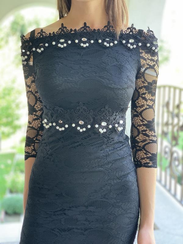 Красивое черное вечернее платье с жемчугом!!! Есть небольшой дефект который можно зашить)) смотрите последнее фото (правый рукав с верха)