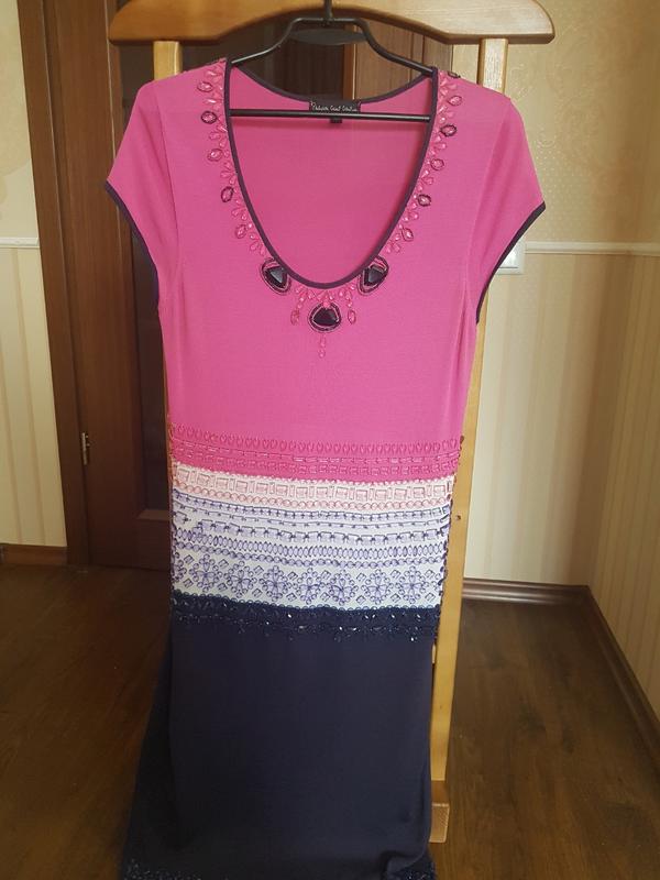 Шикарное платье дэкоррированое камнями, ткань хорошо тянется. Длина изделия от талии 68 см.
