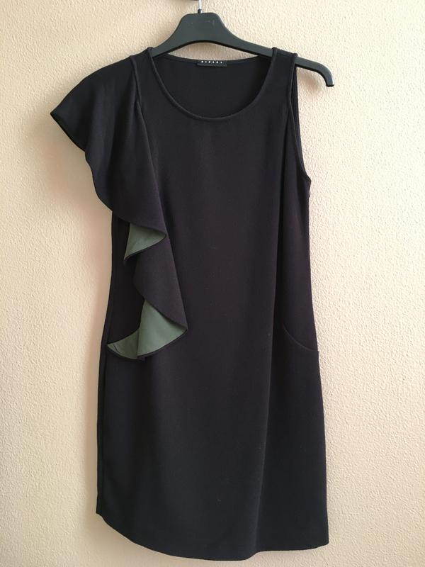 Очень стильное, маленькое чёрное платье. Фирма Sisley. Одно плечо открытое, на другом волан с темно-зелёной подкладкой. Легкая, приятная ткань. Новое, не одела, так как забеременела.
