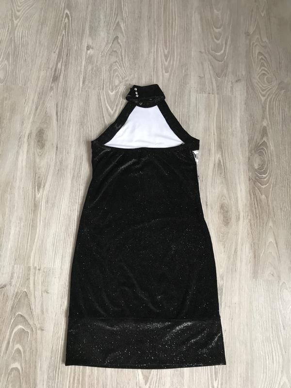 Сукня в чорної та сірої забарвленням Спереду малюнок в паетках Б/у в хорошому стані Тканина велюр з блискітками Розмір:S