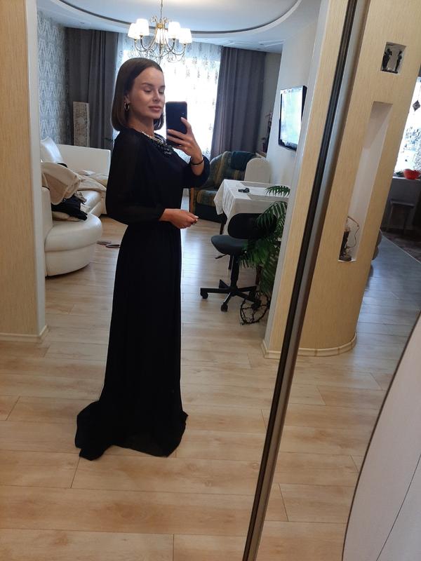 Платье вечернее.Нарядное .Надевалось 1 раз на свадьбу. Зацепок и дефектов нет. Длина изделия- 150см , длина рукава- 48см . Надето на модель размера S , рост 160см , подходит на рост 176см + каблук .