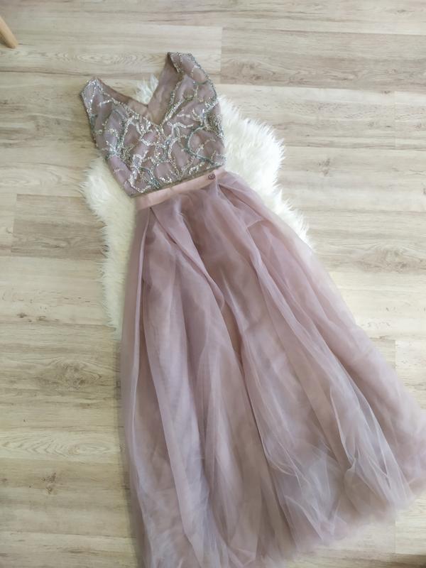 Гарне вечірнє чи випускне плаття Шилось на замовлення. Тканина для топа купувалась за ціною 150$ за метр. Топ нашивався вручну, всі візерунки вирізались з тканини і нашивались на топ. Спідниця - євросітка, ще є коротенька спідничка під низ, щоб не просвічувалось Дуже гарно виглядає. Топ: Пог 47 Довжина від плеча 43 Спідниця: Пот 38 Довжина 109 На всі питання відповім Можливий торг