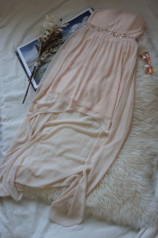 Платье очень нежно выглядит... Перед укорочен, открывая ножки полуобхват груди (см) - 37 - бюст корсетом полуобхват талии - 34 см Верх на силиконе бретель - нет