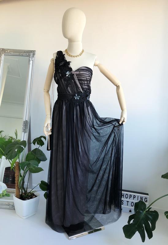 Элегантное,с актуальным кроем -на одно плечо,умеренным декором-вышивкой,вечернее,праздничное-платье миди. Состояние-новое,сток , без бирки. Размер-европейский -18,но за счет присборенной спинки хорошо сидит и 14-16 размерах Такого вы не найдете-в повторе , на торжестве. Качественный бренд,легко одевается-сзади на резинках спинка,по декольте-вставки силикона., длинный подюпник , Замеры: Пог-45- тянется-59 Пот-40-тянеся-44 Поб-71 Длина платья от плеча-1