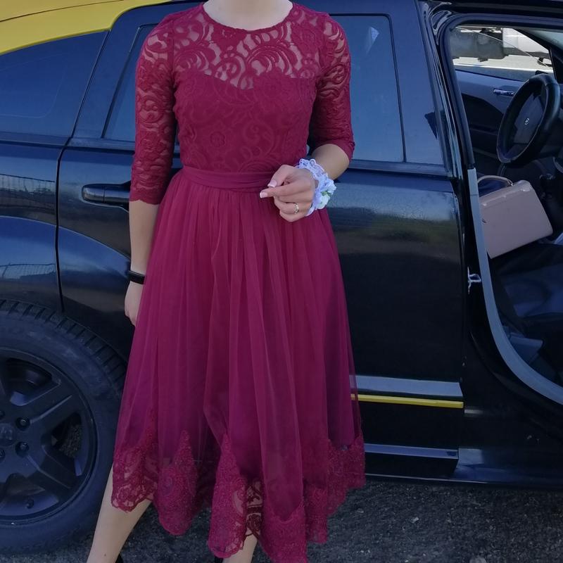 Шикарное кружевное бордовое платье Сзади немного открытая спина Снизу наше кружево Стан новой вещи, одевалось 1 раз, Размер xs-s Отправля по нп или встреча в Киеве дополнительные фото в сообщениях