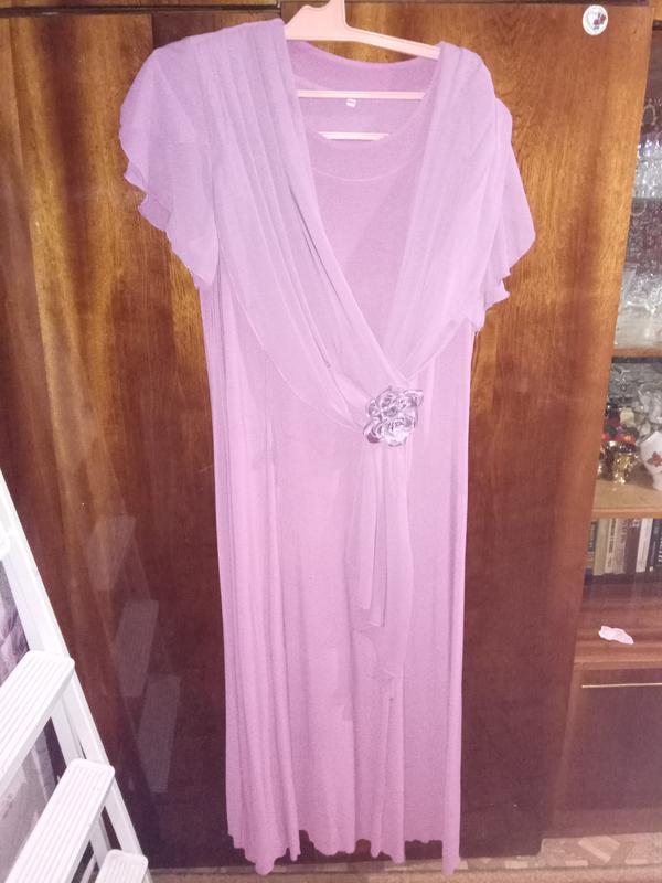 размер 56. красивое и нарядное. подойдёт для торжественных мероприятий. есть маленький нюанс на последних 2х фото, полоска на ткани. замеры: плечи 41 ПОг 56 пот 54 поб 74 Ди 130 ткань струится и тянется