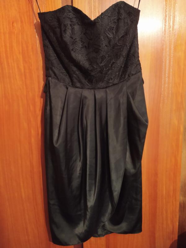 вечернее платье без бретелек , сверху идёт как корсет , садится очень красиво ,подчеркивает и держит грудь , снизу как тюльпанчик . надето 1-2 раза