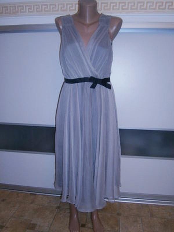 Вечернее платье из серого шифона от очень хорошего бренда. Надевалось один раз на мероприятие. Внутри черная сатиновая подкладка, сверху серый шифон. Смотрится очень эффектно. Есть небольшой дефект на фото 4(зацепка), малозаметна. Учтено в цене. Размер платья 12, подойдет и на 10(М). Замеры: длина - 111см., от подмышки до низа - 90,5см., ПОГ - 44/45см.(в зависимости от бюста), под грудью, где пришита черная полоска( она НЕ тянется) - 36см., низ свободный. Ориентируйтесь по замерам. Цвет Серый Состав полиэстер, шифон