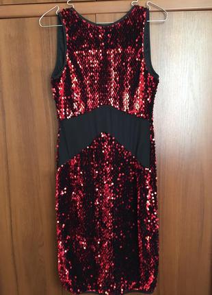 Коктейльне плаття в паетках від Denny Rose. Сукня дуже комфортне, паетка не колеться т. к. пришита на оксамит. Розмір S, можна на М, тягнеться. Довжина: 94 див. а.про.р-40 тягнеться. а.про.т 31 тягнеться. р. о. б 46 тягнеться. Плаття в дуже хорошому стані, 3 виходи. Купувала дорого.