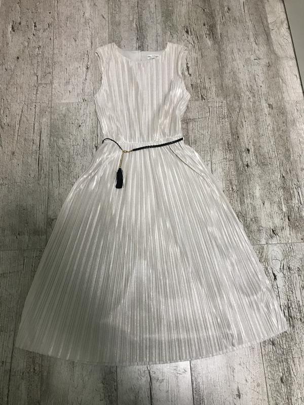 Легкое элегантное платье плисе,кремового цвета усыпано блесками {не осыпаются},на талии под резинку с оригинальным пояском кисточкой