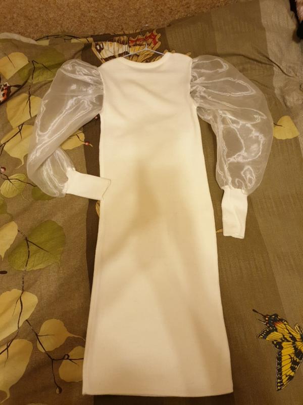 трикотаж молоко очень мягкое к телу, рукав материал, что-то схожее с бантовой тканью, плотной. ни разу так и не одела, провисело на тремпеле, к сожалению. на рост 160см — до колен, без натяжки. хорошо садится на фигуру. смотрится нарядно и женственно. подойдёт для любого праздничного или радостного события в жизни. торг