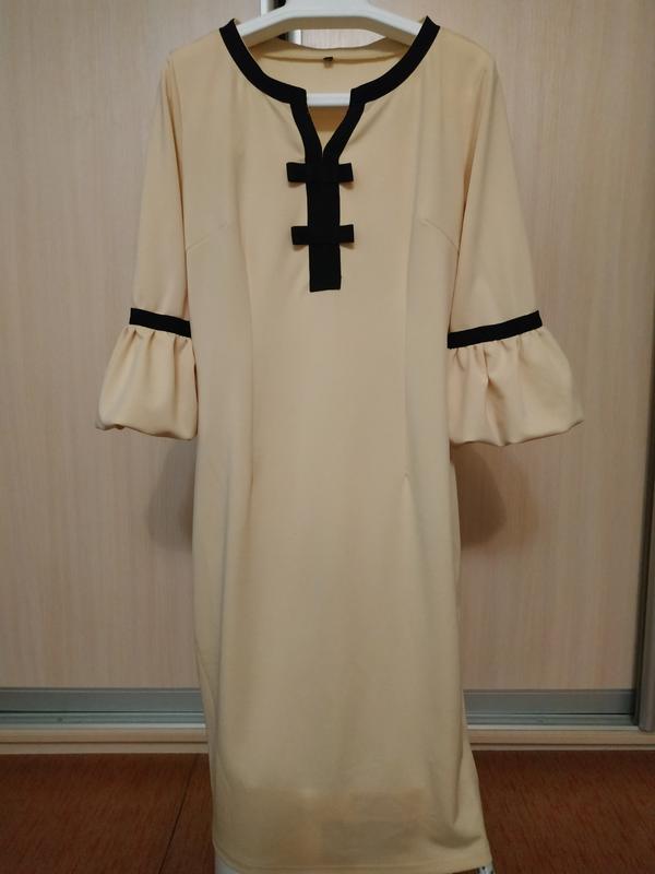 Романтичное милое платьеце кремового оттенка. Отлично тянется. Есть боковая потайная молния. ПОГ-49см(в спокойном состоянии), длина-106см. Ткань плотная,не просвечивается.