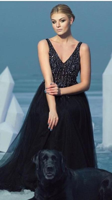 Вечернее выпускное платье, низ шыфон, верх украшен стразами и паетками. В этом платье вы будете неотразимы