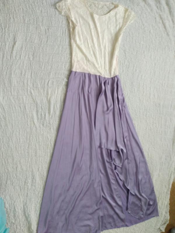 Довге плаття з розпоркою збоку, верх гіпюр, низ атласний.