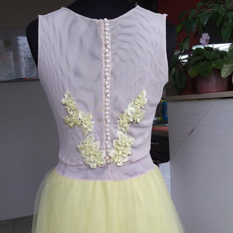 Очень лёгкое, комфортное платье. и в тоже время нарядное и нежное . длина от плеча до низа 86см. талию не измеряла так как очень хорошо тянется...одевала через голову не растегивая пуговицы.