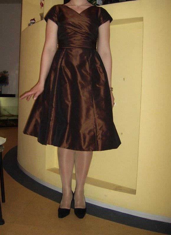 Состояние отличное. Размер S-M. Цвет- коричневый с золотым переливом. Застёжка молния. ОТ-71см Длина- 101см.