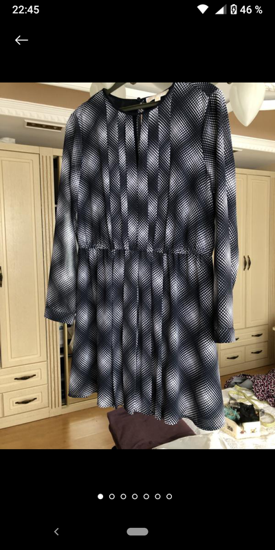 Платье в идеальном состоянии. Размер L. На L сядет идеально. Шифот тяжелый, красиво спадает.Платье с подкладкой, качество очень хорошее!