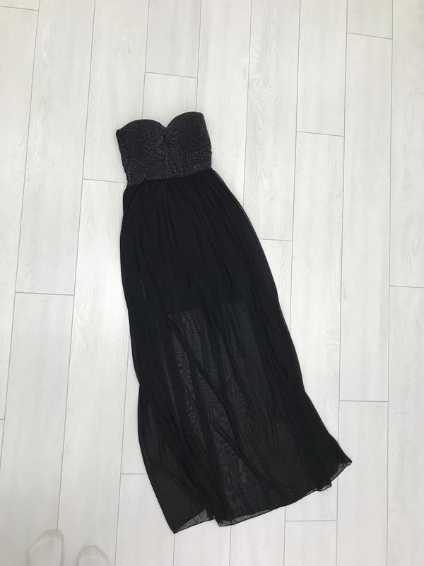 Длинное платье с оголенными плечиками, очень красиво смотрится, по желанию скину фото. Размер с-м