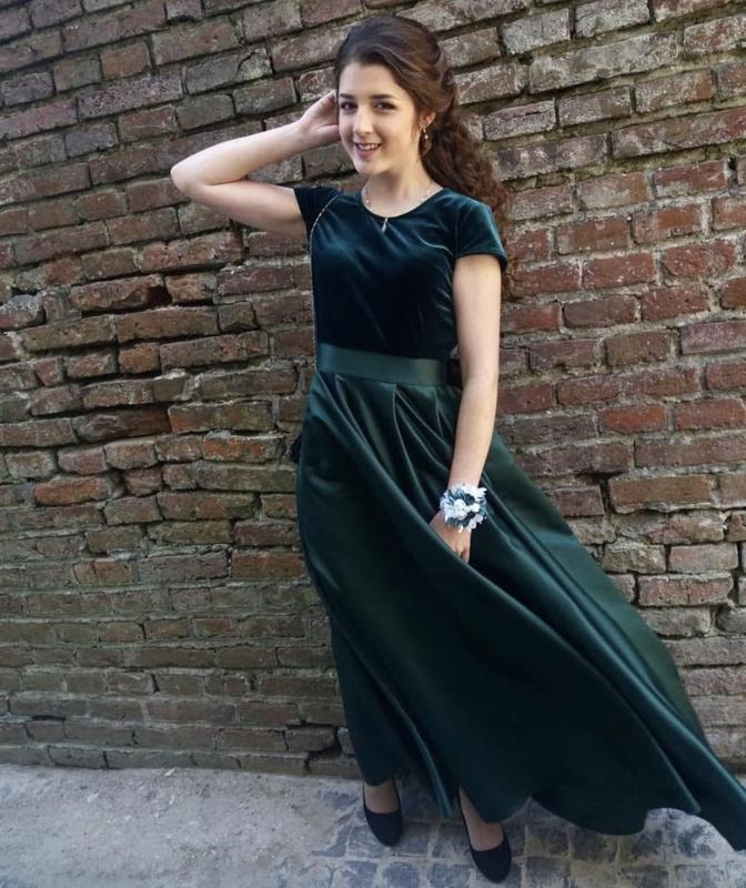 Плаття пошите індивідуально,з атласу і бархату,смарагдового кольру. Мінімалістичне,з бантом ззаді Зріст 170-174 см