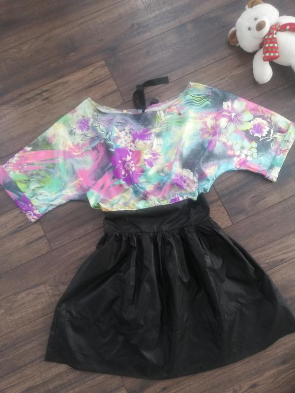 Яркое, необычное летнее платье. Верхняя часть смещается на одно плечо, что придает платья женственность. Рукава - кажан. Сзади разрез на спинке, который соединяется лентой. В этом платье невозможно остаться незамеченной! Длина - 80см.