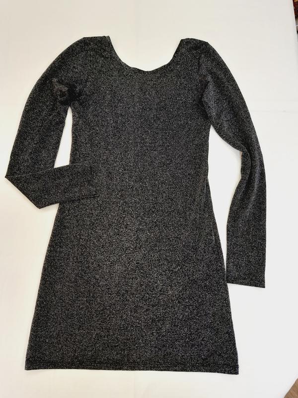 Новенькое вечернее серебристое стоковое платье на барышню 44-46р. Спинка оголенная.Длина от плеча до низа 81см, ширина под мышками 39см, длина рукава от плеча 64см, бедра 42см,ширина низа 45.5см.