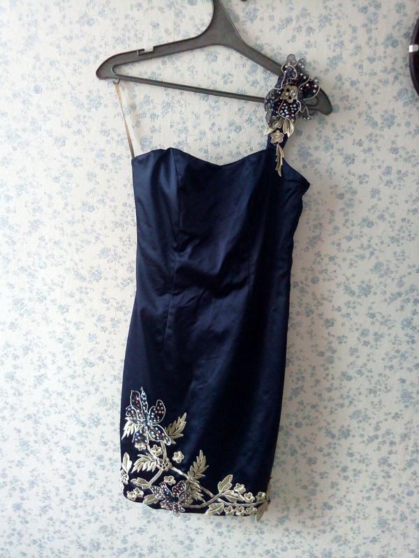 нарядное платье на одно плечо, качество высшее, дорогой материал, просиликоненое в зоне декольте для хорошей фиксации на теле. не хватает немного камней, на фото все видно)