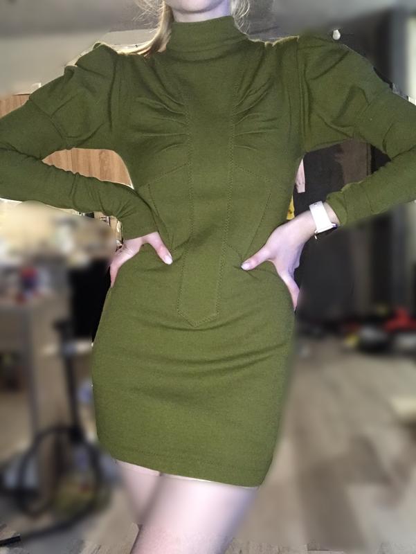 Платье с невероятными плечиками и нереальным оливковым цветом. Сидит по фигуре. Ткань плотная, есть подкладка из сетки. Сшито на заказ. Мои параметры 88-67-95
