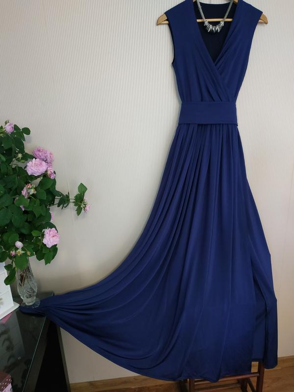 Нарядное,длинное платье "микро масло" с разрезом до пояса(запах),цвет индиго,сшито под заказ,на рост от 170.