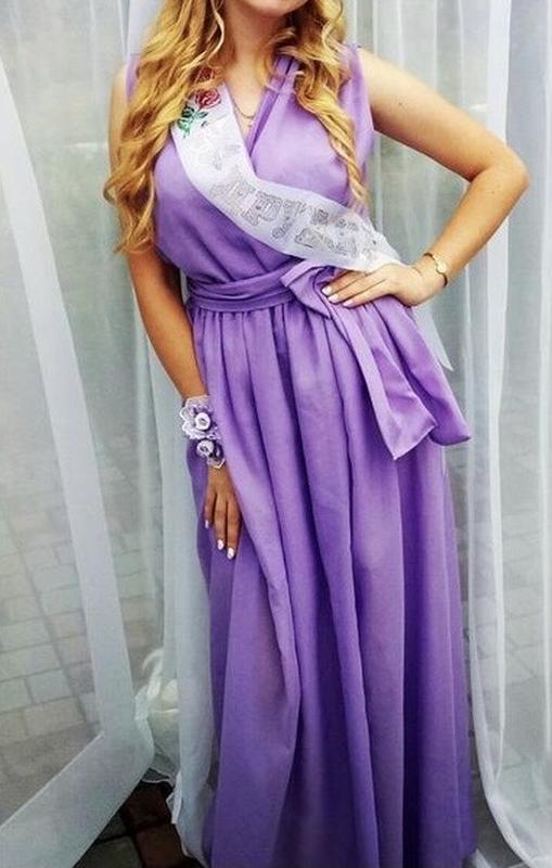 Нежно фиолетовое платье в пол с поясом Размер Л Длина - 150см Плечи - 40 см