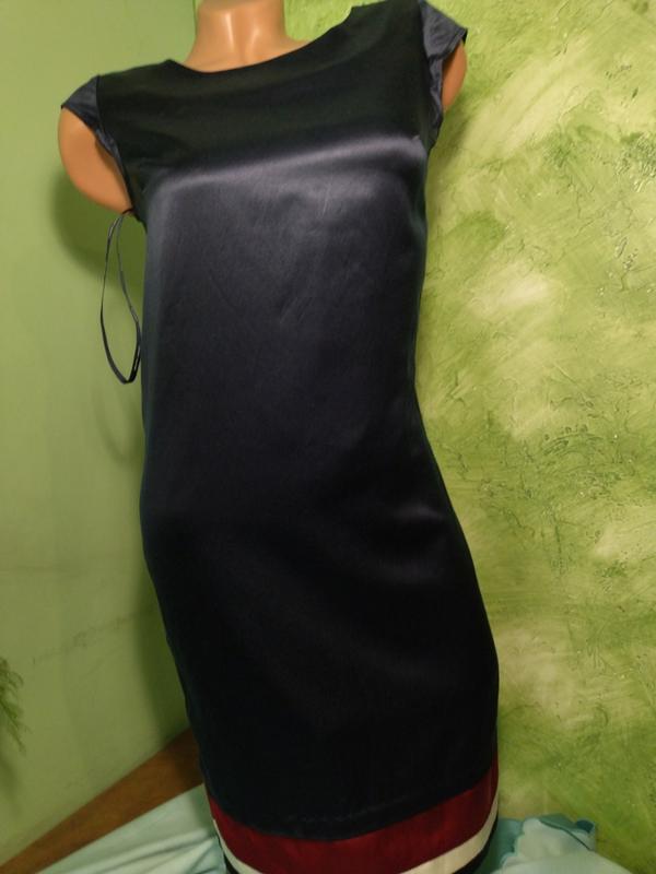 Сукня з шовку темно синього кольору низом колорблок з червоного і білого кольору не великий рукав з легка спущений рукав , з боку прихована блискавка підкладка - 💯 поліестер ПОГ - 41 ПІТ - 39 ПОБІДИ - 45 ДОВЖИНА -95