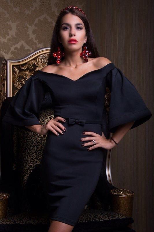 Маленькое черное платье) Новое. Черное с открытыми плечами 42-44, Дайвинг ПОГ 40 ПОТ 35 ПОБ 41 Тянется