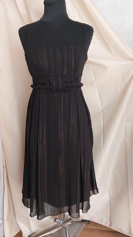 Красивое платье, оригинал,размер указан 42 европейский, подходит на М. Ткань чёрная с золотистыми полосками, из-за этого она играет и кажется тёмно- шоколадного цвета. Мерки: грудь 45 см, полоска под грудью 38 см, длина 102 см. *означает, что товар участвует а акции ( при покупке 2х едениц, вторая вещь -50%)