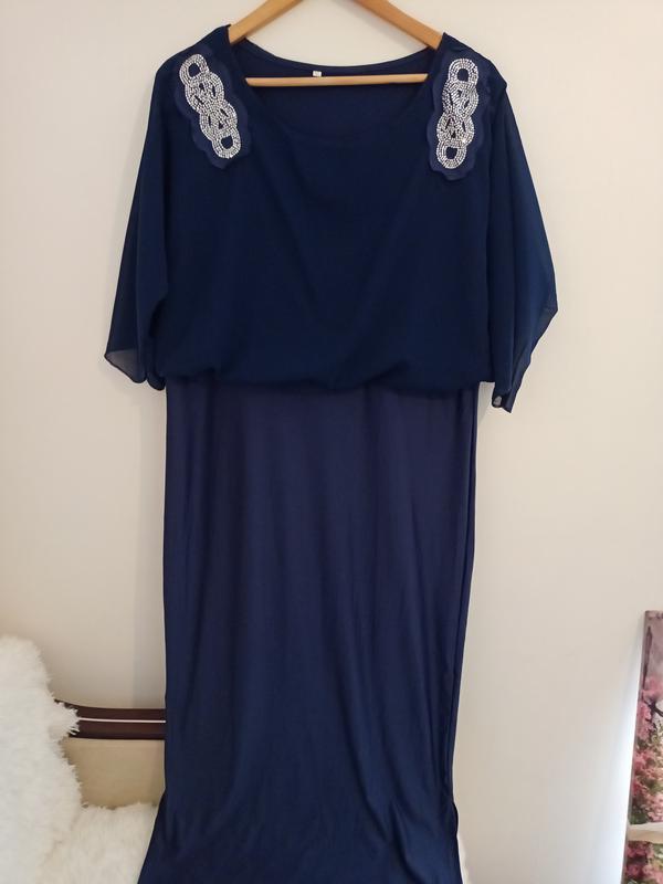 Нарядна сукня. Привезена з Італії. До неї є ще шифонова накидка темно-синього кольору, коротка. На наш 46-48 розмір. В чудовому стані. Заміри надам по запиту. Дивіться інші мої оголошення, багато цікавих фірмових речей.