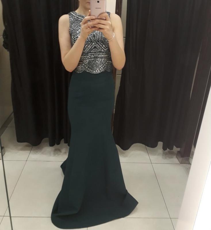 Вечернее платье насыщенно зелёного цвета,фасон рыбка Отдельно топ отдельно юбка Состояние платья-идеальное,химчистка не требовалась Все камни на месте в идеальном состоянии Размер 42-44,есть возможность расшить юбку
