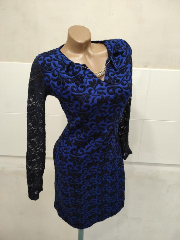 Шикарное вечернее платье с гипюровой спинкой и украшением. Состояние отлично. Размер 46-48, ткань отлично тянется. Состав ткани: вискоза и хлопок Ширина по груди - 45 Талия - 37 Бедра - 44 Рукав - 54 Длина - 87