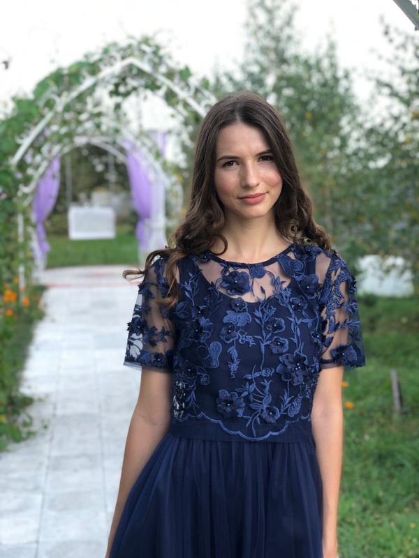 Сукня складається з основи та топу, який одягається на верх сукні. Розмір 38. Заміри: ОГ82, талія 64, тканина тягнеться трошки.