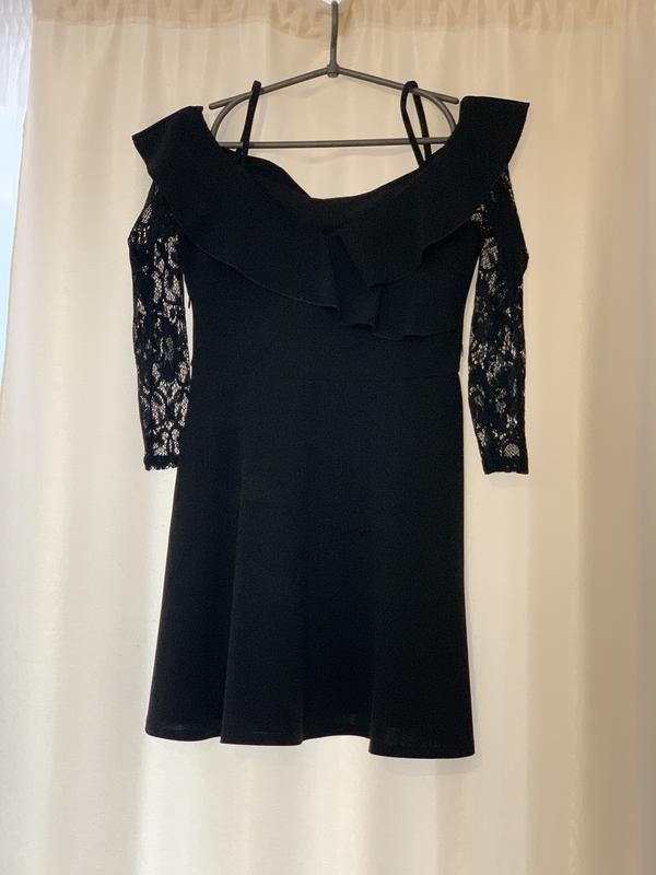 Красивое стильное сексуальное платье чёрного цвета. Рукава-гипюр Можно носить с открытыми плечами.