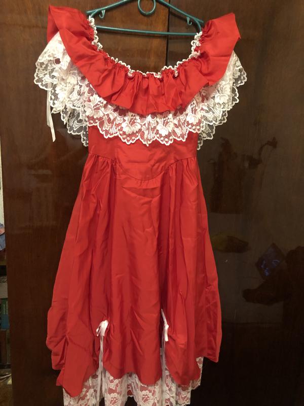 Платье красивое красное с белой рюшей
