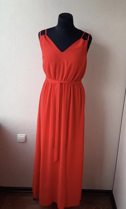 Выходное платье от Lipsy, ,насыщенного кораллового цвета,талия на резинке UK 10 ОГ 94см ОТ 66-100 см ОБ 170 см Длина 128 см Подпишись чтобы не потерять Приятных покупок до талии 38см