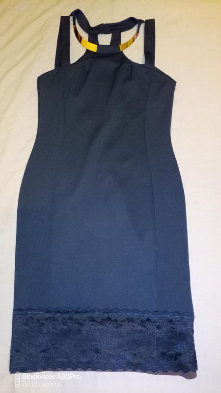 Нарядное чёрное платье миди. Ткань дайвинг. Хорошо тянется. Платье открытое. Не просвечивает. Впереди находится украшение из металла, золотого цвета в виде месяца. Низ подшит коричневой тканью, сверху на коричневом- чёрное кружево. Размеры: Длина 105 см. ПГ. 43 см. ПТ. 40 см. ПБ. 48 см.