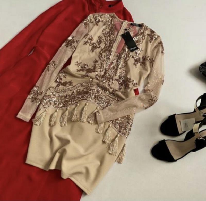 Роскошное платье в пайетки Nasty Girls размер М, сядет и на С состояние новое спинка и рукава - сетка без подклада , расшита пайетками , в нюдовом цвете , выглядит шикарно , очень красиво блестит, на фото передать не удалось ПОГ 43, ПОТ 35 , ПОБ 46, длина 83,5, рукав 60 изысканное , утонченное и безумно красивое
