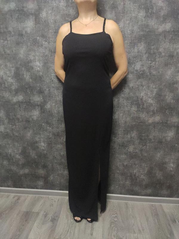 Чёрное нарядное макси. На хорошей фигуре будет смотреться гораздо лучше)) На фото получилось блеклое, на самом деле оно насыщенно-чёрное. Бретели украшены чёрным бисером, который переливается на свету.