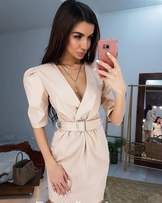 Платье (пояс в комплекте) ✔Размеры бордо - 42-44, 44-46 ✔Размеры беж - 44-46 ✔Ткань - Эко-кожа 🔝🔝🔝Отменное КАЧЕСТВО!!!🔝🔝🔝 💎💎💎 Цена 350