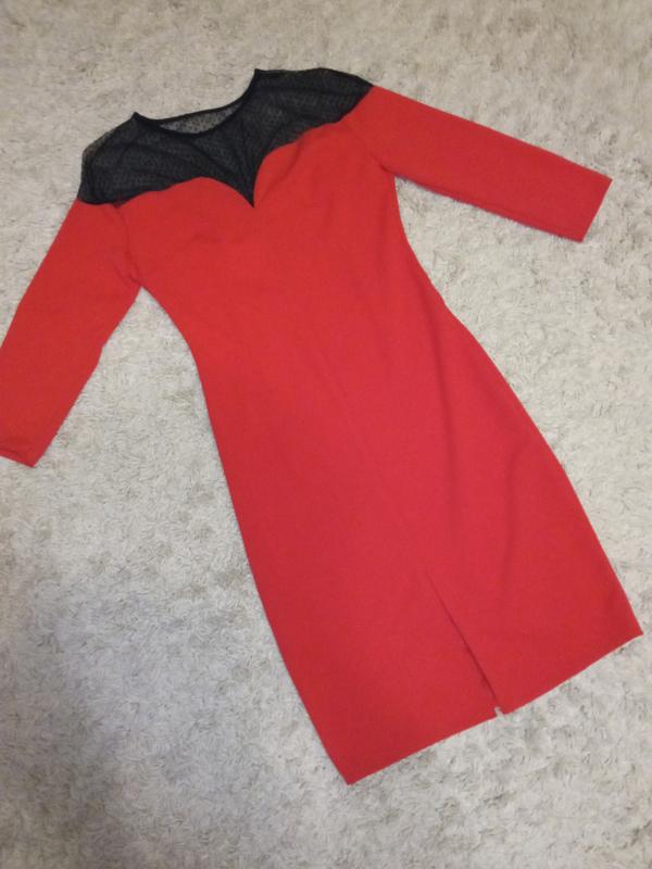 Червоне плаття Матеріал креп-дайвінг + сітка Рукави 3/4 Виробник Україна Розмір 44