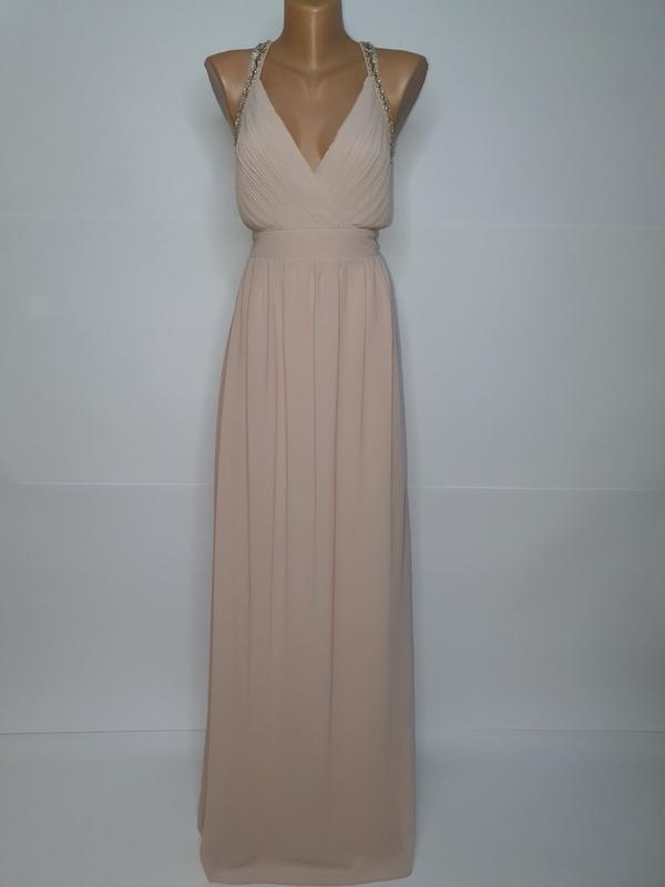 Ніжна сукня максі, колір пудра, ідеальна спинка, розмір М, на підкладці, пояс (напівобхват під грудьми -38), пог 43, стегна вільно