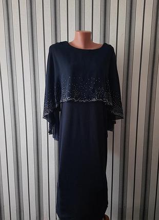 Трикотажное платье с шифоновой накидкой с камушками.Накидка не снимается. Смотреет празднично.Ет фото на теле, при необходимости могу отправить Рукав 3/4, -38 см Плече 10см ПОГ 104см Талия90 Об 104 Длина 110 Накидка пришита Сзади длина 65см, спереди 35см