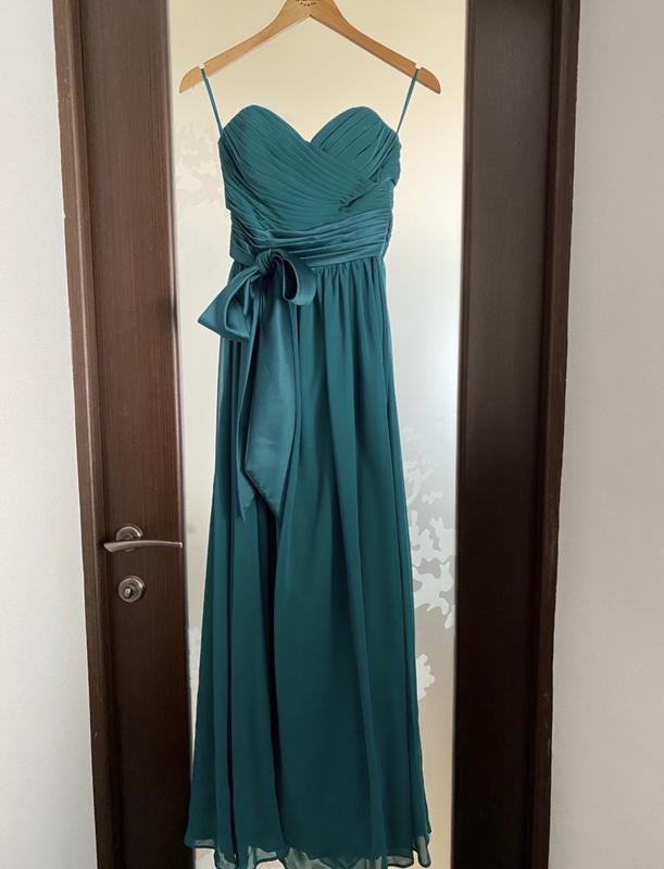 Покупалось в салоне Fashion Bride Очень красивое платье без бретелей, изумрудного цвета. Материал очень легкий, приятный к телу. Идеально садится на рост 165 см + каблук.